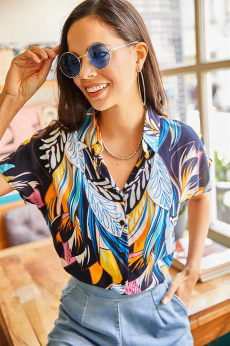 Yarasa Dokuma Gömlek Lacivert Büyük Palmiye (GML-19000576)