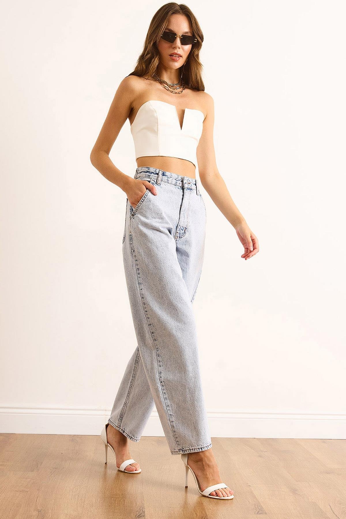 Yüksek Bel Yandan Cepli Boyfriend Jean Açık Mavi (JEA-19000122)